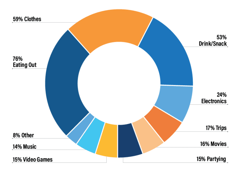 As reported by OppU, college students, who are financially supported by their parents in college, spend their money in the following ways: